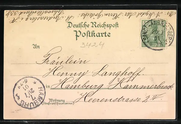 gelaufen 1901, Eckknick oben li., guter Zustand