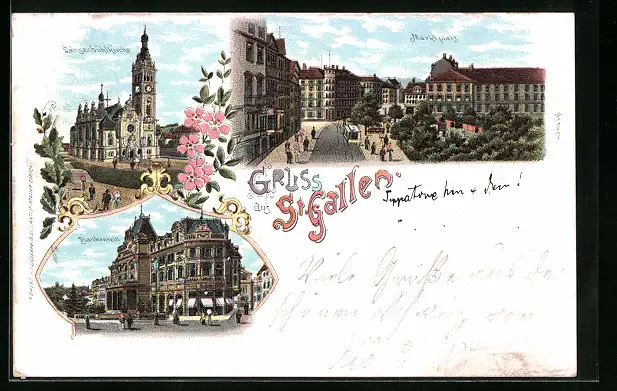 Lithographie St. Gallen, Bankverein, Marktplatz