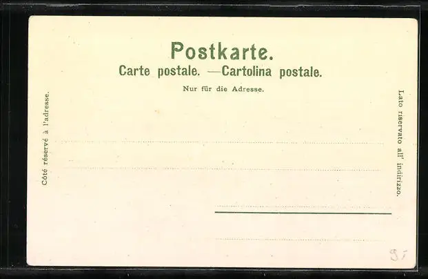 Personenbezogene Daten auf der Rückseite der Karte wurden durch blauen Textmarker unkenntlich gemacht. Die blauen Stellen sind auf die Vorderseite durchgeweicht und wirken sich negativ auf das Postkartenfoto aus