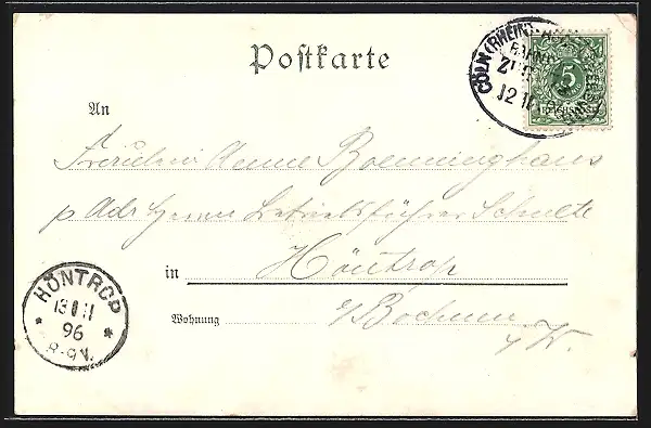 gelaufen 1896, Eckknick oben li., guter Zustand