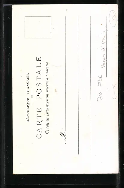 Personenbezogene Daten auf der Rückseite der Karte wurden durch blauen Textmarker unkenntlich gemacht. Die blauen Stellen sind auf die Vorderseite durchgeweicht und wirken sich negativ auf das Postkartenfoto aus