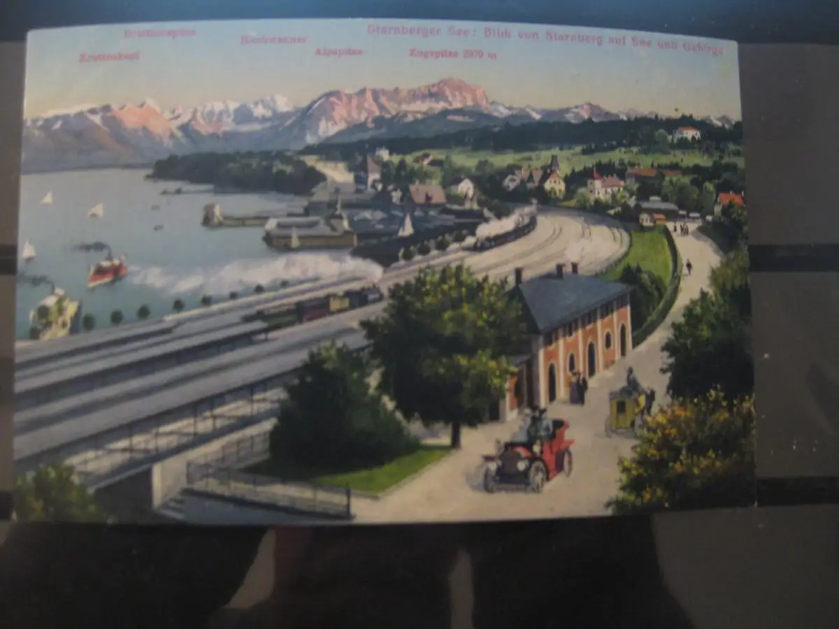 Motiv: See, Bahnhof, Zug, Autos. Verlagsangaben: München, Lorenz Fränzl, 1908, 511/34.
