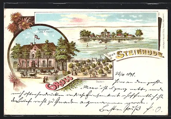 Lithographie Steinhude, Gasthaus Rathskeller mit Garten
