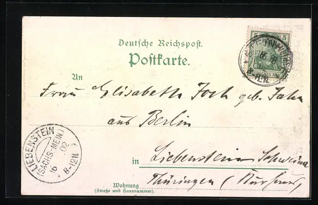 gelaufen 1902, Eckknick re. oben, guter Zustand
