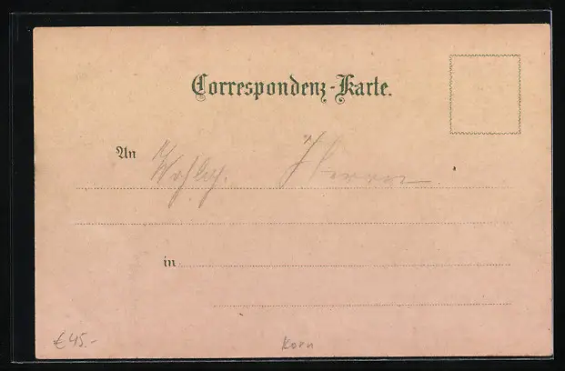 Personenbezogene Daten auf der Rückseite der Karte wurden durch blauen Textmarker unkenntlich gemacht. Die blauen Stellen sind auf die Vorderseite durchgeweicht und wirken sich negativ auf das Postkartenfoto aus