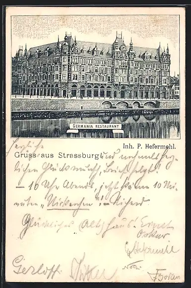 Lithographie Strassburg, Germania-Restaurant, Inh. P. Hefermehl