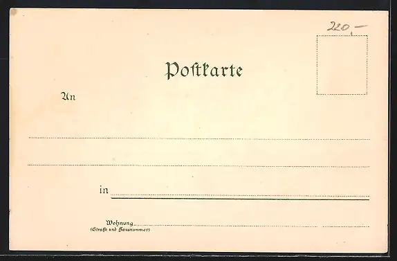 Personenbezogene Daten auf der Rückseite der Karte wurden durch blauen Textmarker unkenntlich gemacht. Die blauen Stellen sind auf die Vorderseite durchgeweicht und wirken sich negativ auf das Postkartenfoto aus