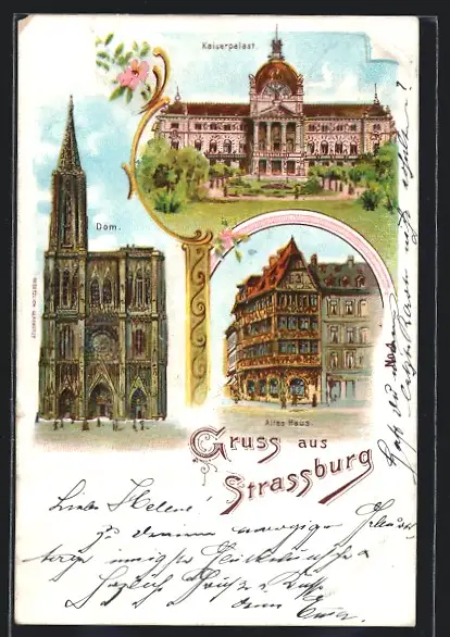 Lithographie Strassburg, Kaiserpalast, Altes Haus, Dom