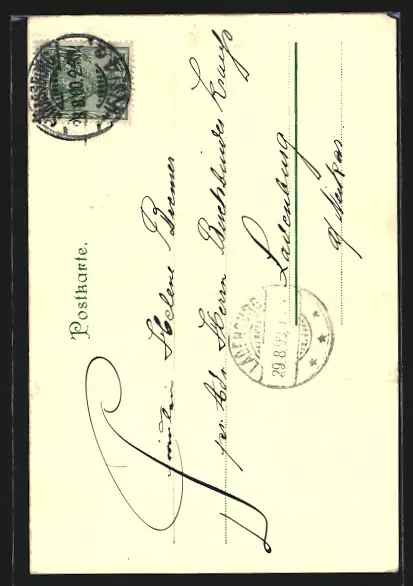 gelaufen 1900, Eckschaden oben li., guter Zustand