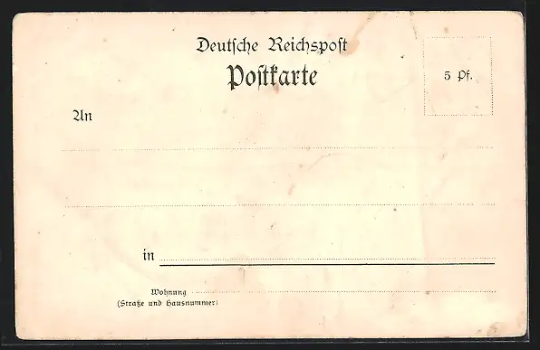 Personenbezogene Daten auf der Rückseite der Karte wurden durch blauen Textmarker unkenntlich gemacht. Die blauen Stellen sind auf die Vorderseite durchgeweicht und wirken sich negativ auf das Postkartenfoto aus