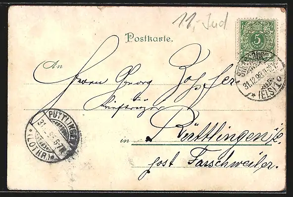gelaufen 1898, Einriss li. oben, guter Zustand