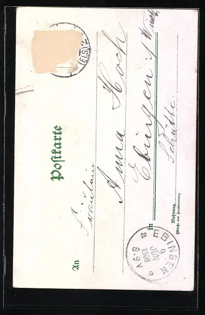gelaufen 1900, Briefmarke entfernt, rückseitig Oberflächenschaden, Einriss re. oben, guter Zustand