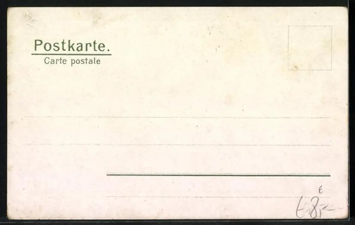 Personenbezogene Daten auf der Rückseite der Karte wurden durch blauen Textmarker unkenntlich gemacht. Die blauen Stellen sind auf die Vorderseite durchgeweicht und wirken sich negativ auf das Postkartenfoto aus