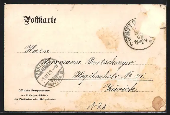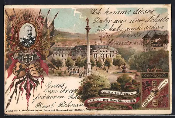 Lithographie Stuttgart, 25. jähriges Jubiläum d. Württbg. Kriegerbund 1877-1902