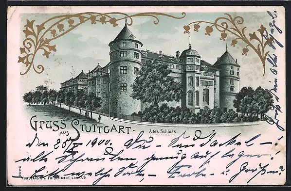 Lithographie Stuttgart, Ansicht Altes Schloss