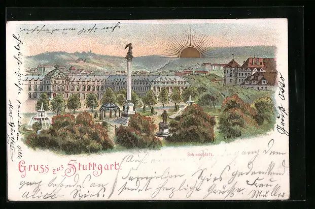 Lithographie Stuttgart, Ansicht Schlossplatz