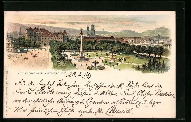 Lithographie Stuttgart, Blick auf Schlossplatz