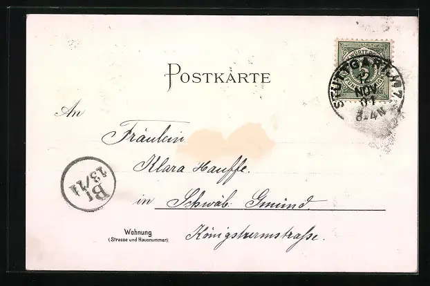gelaufen 1901, rückseitig Oberflächenschaden, guter Zustand
