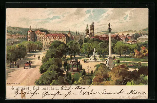 Lithographie Stuttgart, Blick zum Schlossplatz