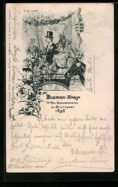 Lithographie Stuttgart, Blumen-Korso im Kgl. Schlossgarten