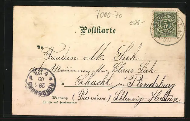 gelaufen 1900, Eckschaden li. oben, guter Zustand