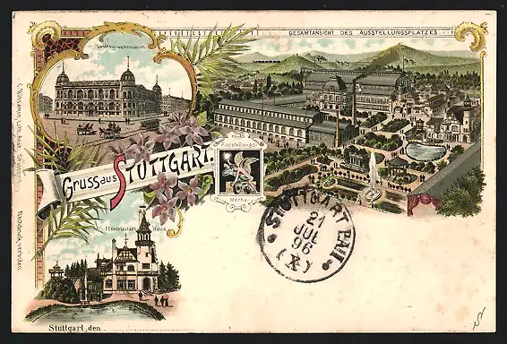 Lithographie Stuttgart, Gesamtansicht des Ausstellungsplatzes, Landesgewerbemuseum