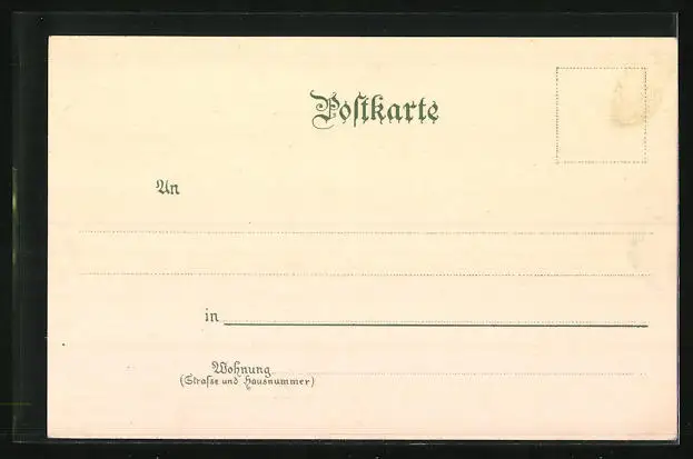 Personenbezogene Daten auf der Rückseite der Karte wurden durch blauen Textmarker unkenntlich gemacht. Die blauen Stellen sind auf die Vorderseite durchgeweicht und wirken sich negativ auf das Postkartenfoto aus