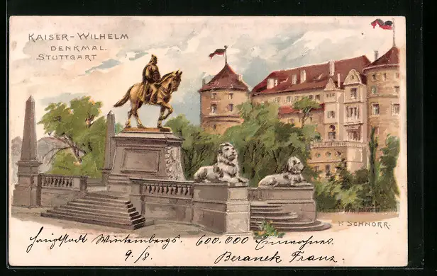 Lithographie Stuttgart, Kaiser-Wilhelm Denkmal