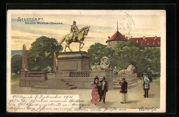Lithographie Stuttgart, Kaiser Wilhelm I. Denkmal