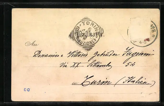gelaufen 1898, Briefmarke entfernt, rückseitig Oberflächenschaden, Bugspur oben li., guter Zustand
