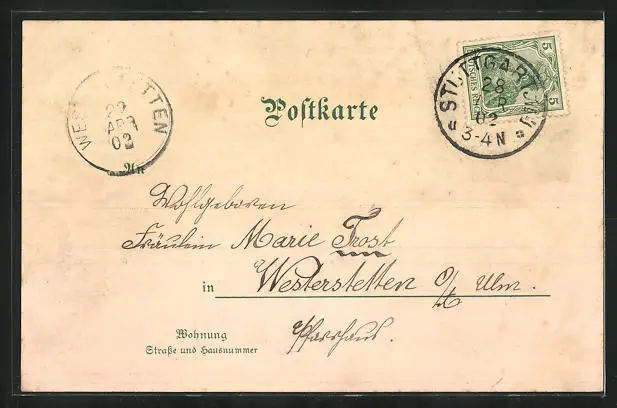 gelaufen 1902, guter Zustand