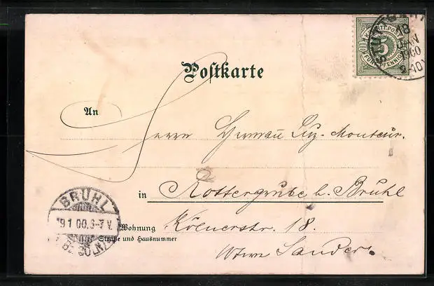 gelaufen 1900, Bugspur li. mittig, Stempelspur, guter Zustand