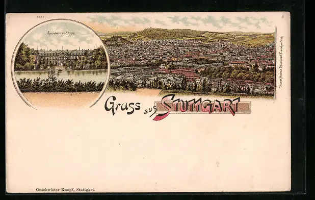 Lithographie Stuttgart, Teilansicht, Residenzschloss
