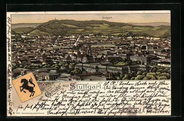Lithographie Stuttgart, Totalansicht aus der Vogelschau