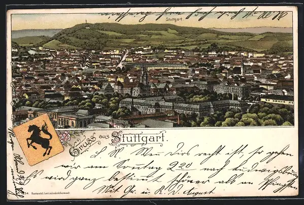 Lithographie Stuttgart, Totalansicht aus der Vogelschau