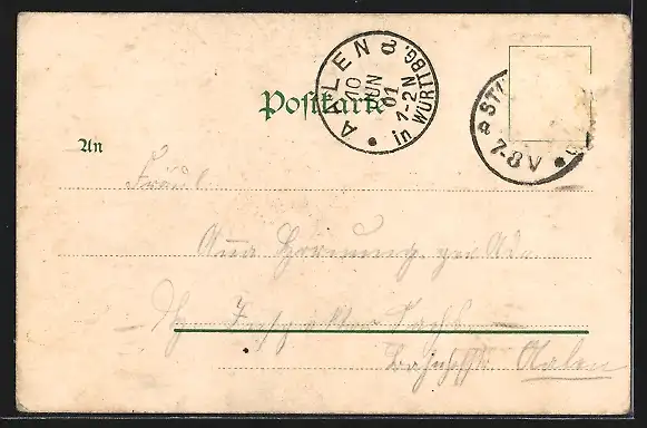gelaufen 1901, Eckknick re. oben, Briefmarke entfernt, guter Zustand