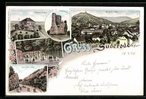 Lithographie Suderode / Harz, Gasthaus Felsenkeller, Stubenberg, Kaltes Thal