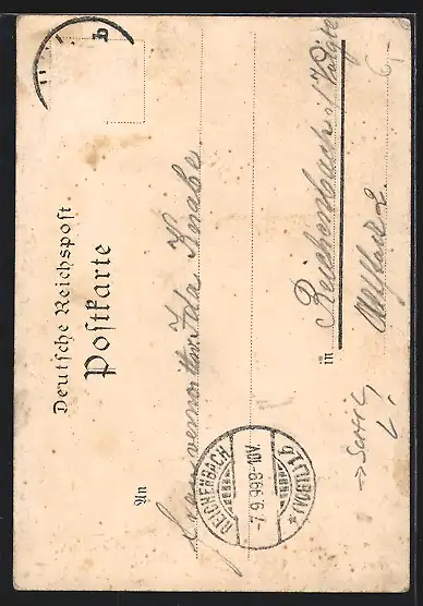 gelaufen 1899, Briefmarke entfernt, rückseitig Oberflächenschaden, guter Zustand