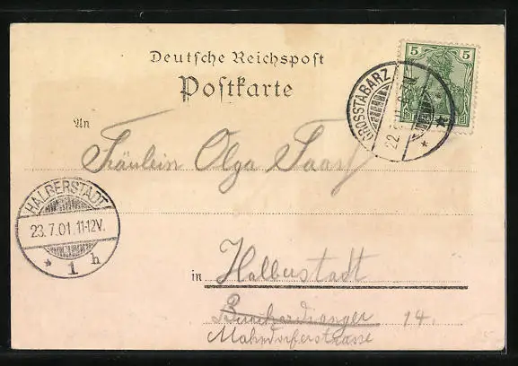 gelaufen 1901, Bugspur unten rechts, guter Zustand