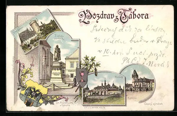 Lithographie Tabor, Radnice, Zizkuv pomnik, Klokoty