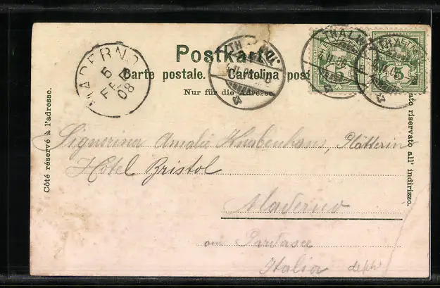 gelaufen 1908, Einriss oben mittig, Eckknick li. unten, guter Zustand