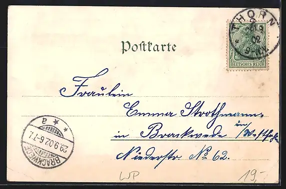 gelaufen 1902, Eckknicke unten, guter Zustand