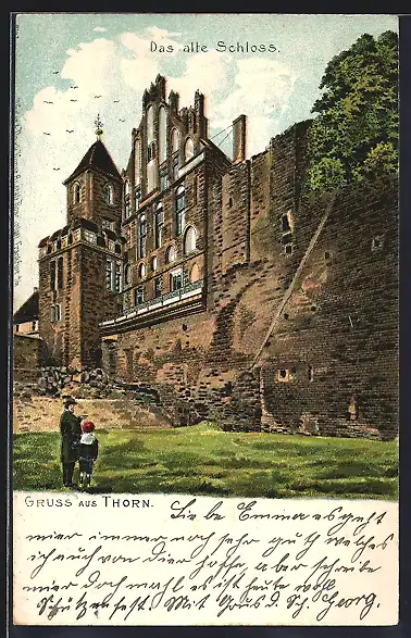 Lithographie Thorn, Partie am alten Schloss