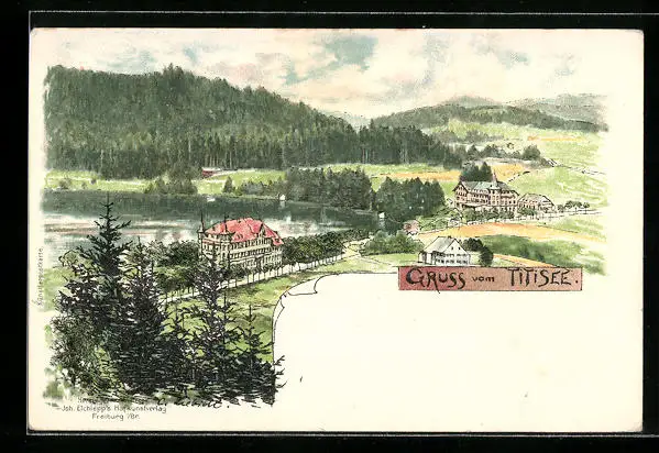 Lithographie Titisee, Totalansicht der Ortschaft