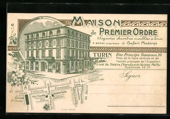 Lithographie Torino, Hôtel, Maison de Premier Ordre, Via Principe Tommaso 10