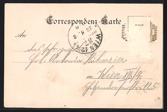 gelaufen 1898, Briefmarke entfernt, rückseitig Oberflächenschaden, Bugspur li. oben, guter Zustand