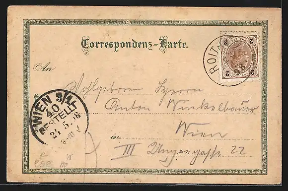gelaufen 1898, Stecknadellöcher re. unten u. oben mittig, Eckknick li. unten, guter Zustand