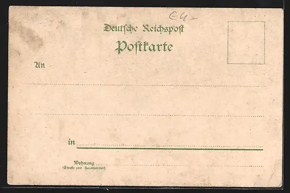 Personenbezogene Daten auf der Rückseite der Karte wurden durch blauen Textmarker unkenntlich gemacht. Die blauen Stellen sind auf die Vorderseite durchgeweicht und wirken sich negativ auf das Postkartenfoto aus