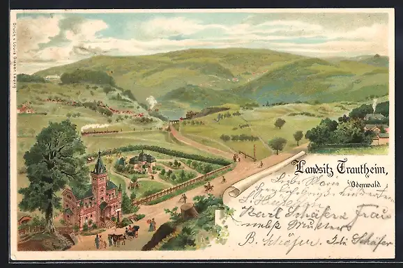 Lithographie Trautheim i. Odenwald, Partie am Restaurant