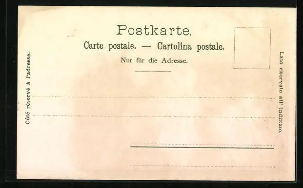 Personenbezogene Daten auf der Rückseite der Karte wurden durch blauen Textmarker unkenntlich gemacht. Die blauen Stellen sind auf die Vorderseite durchgeweicht und wirken sich negativ auf das Postkartenfoto aus
